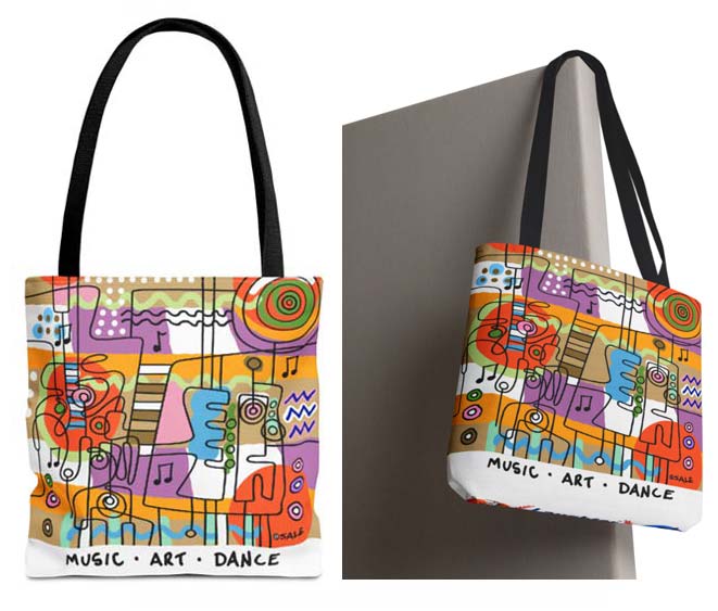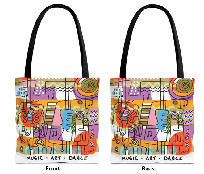 “Music Art Dance. Brown.” Colorful Tote Bags